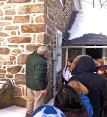 The 1803 House [built in 1803] showed the children hearth cooking, butter churning, apple paring and herb usage. The Knauss Homestead [built in 1777] talked about children's chores, writing in a diary and the importance of streams near the homes. The Shelter House [built in 1734] taught the children about the trails into Emmaus, how to make corn cob dolls and that there is a not part of the corn that was wasted. The Moravian Church [established in 1747] showed the children the importance and layout of God’s Acre Cemetery, which was also the first location of the original church. This program was the 1st step in matching their studies with local history.